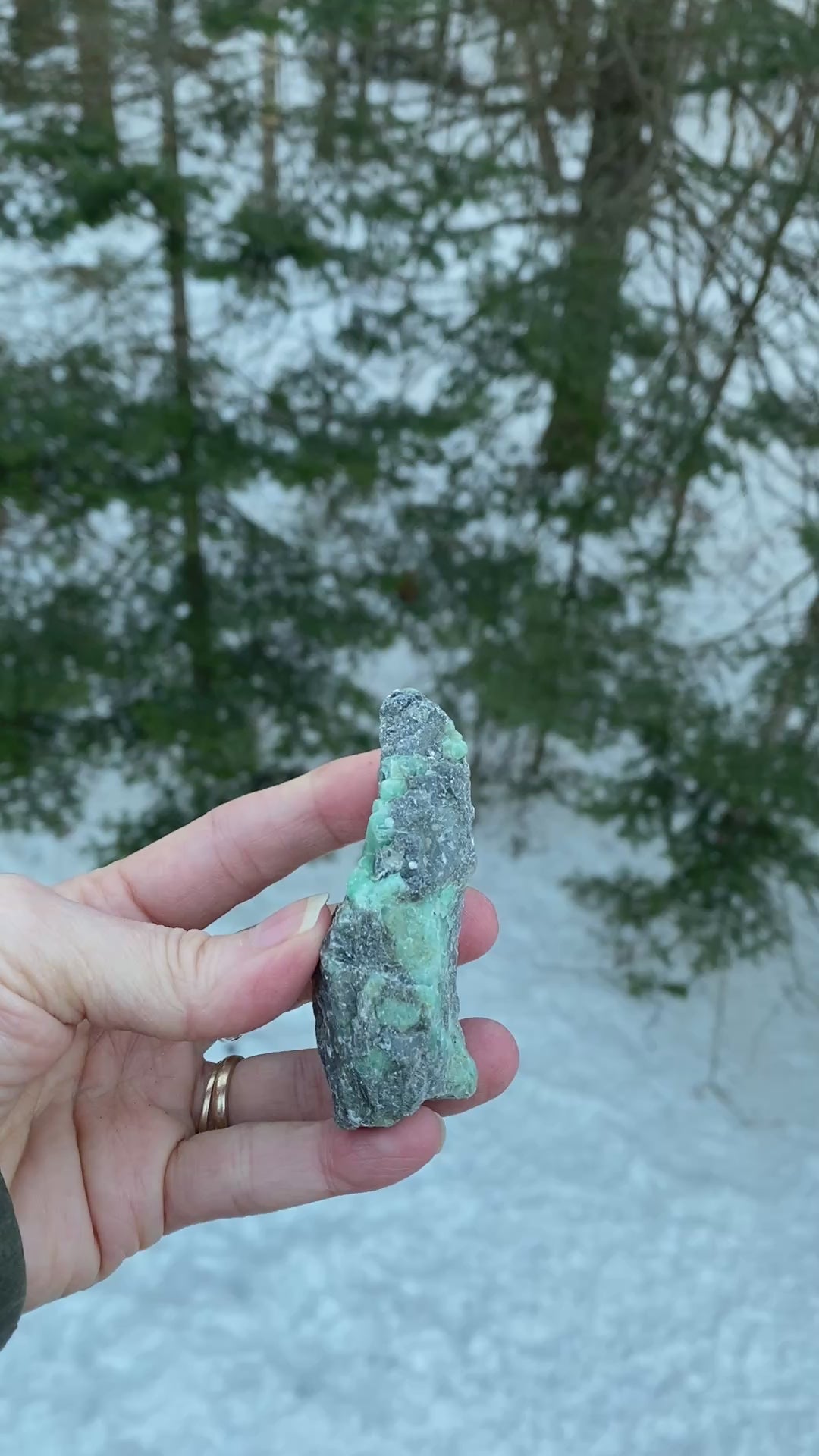 1 Raw Green Emerald Small Piece with some sparkly Hematite - Healing Crystal Mineral Gemstone - Metaphysical Reiki Chakra Wicca